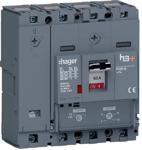 hager HNS064DC Leistungsschalter h3+ P160 TM ADJ 4P4D N0-100% 63A 40kA CTC