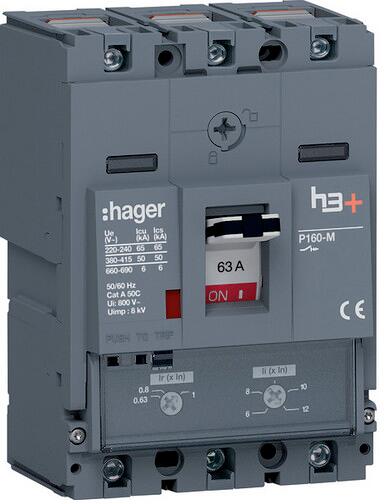Hager HMS063DC Leistungsschalter h3+ P160 TM ADJ 3P3D 63A 50kA CTC
