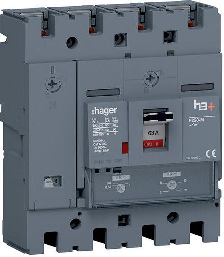 Hager HET064DR Leistungsschalter h3+ P250 TM ADJ 4P4D N0-100% 63A 70kA FTC