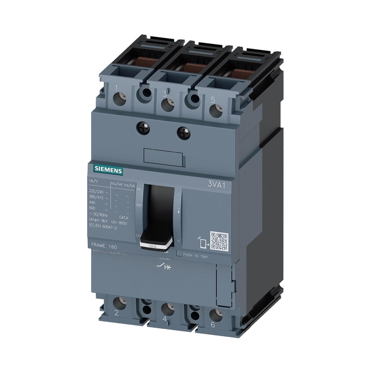 Siemens 3VA1163-4EF36-0AA0 Leistungsschalter 3VA1 IEC Frame 160 Schaltvermögensklasse S Icu=36kA @ 415V 3-polig, Anlagenschutz TM240, ATAM, In=63A Übe