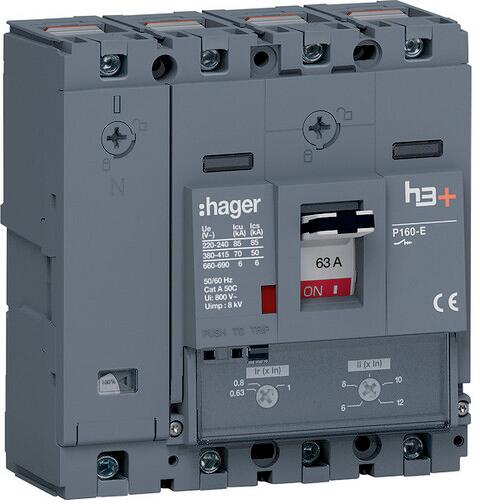 Hager HES064DC Leistungsschalter h3+ P160 TM ADJ 4P4D N0-100% 63A 70kA CTC