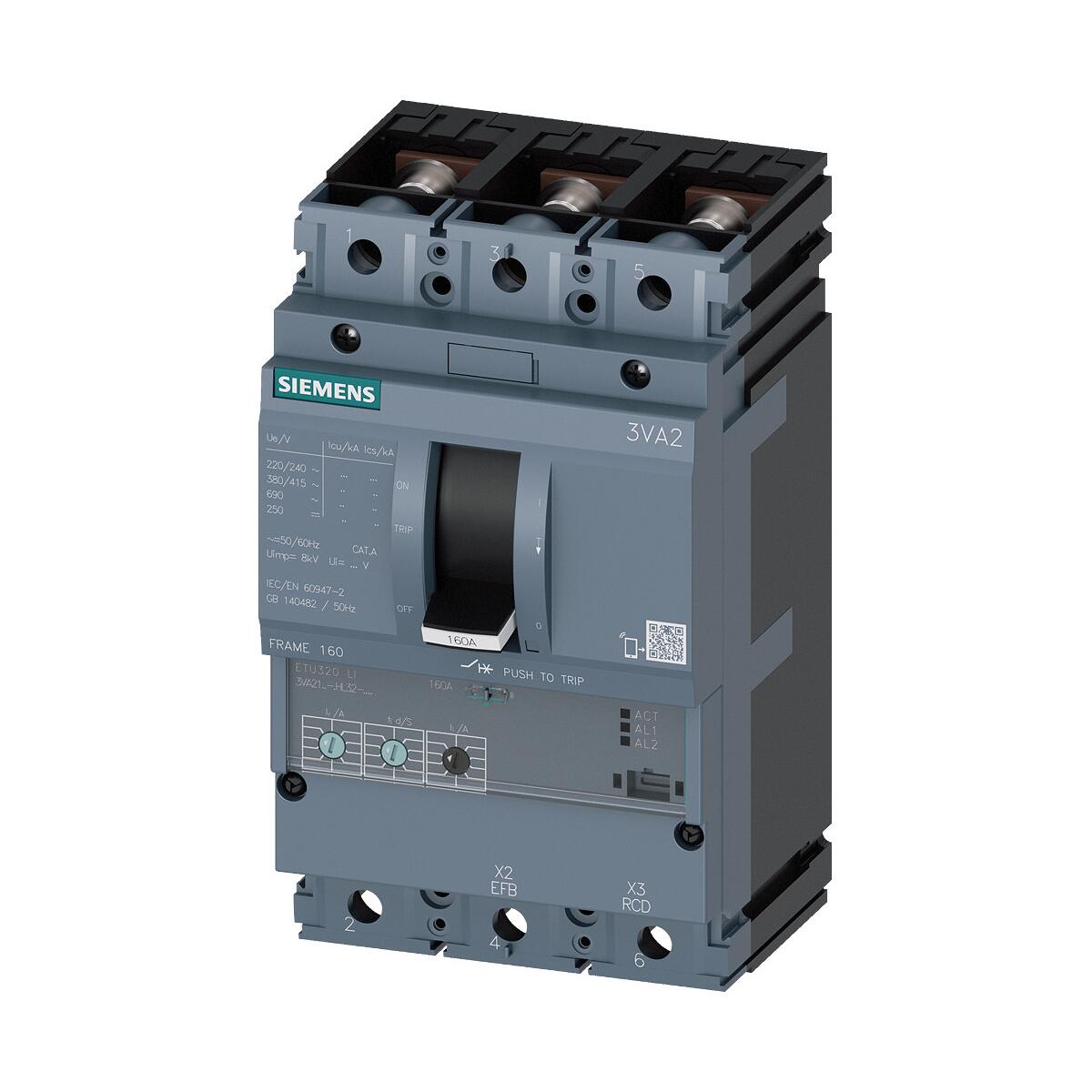 Siemens 3VA2163-5HL32-0AA0 Leistungsschalter 3VA2 IEC Frame 160 Schaltvermögensklasse M Icu=55kA @ 415V 3-polig, Anlagenschutz ETU320, LI, In=63A Über