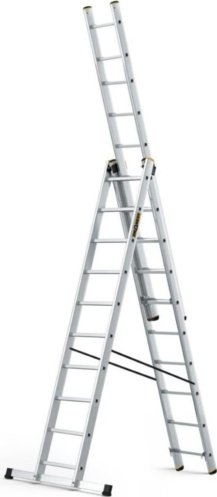 DRABEST | Leiter - PRO Serie - Aluleiter Mehrzweckleiter - 3-teilig - 3 x 11 Stufen - Belastbarkeit 150 kg - Arbeitshöhe 6,31 m - inkl. Eimerhaken
