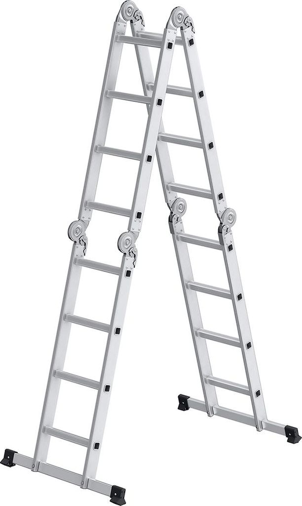 Leiter mit 16 Stufen in 6 Positionen, 430 cm lang, silberfarben