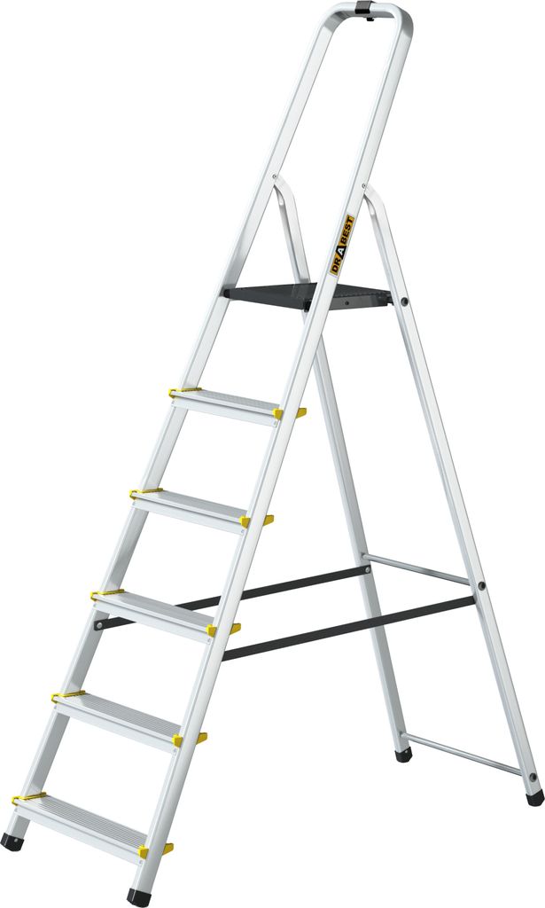 Drabest | Leiter - Haushaltsleiter - Aluminiumleiter - 6 Stufen - Leicht und kompakt - Mit Werkzeugablage und rutschfesten Stufen - Tragkraft 125 kg