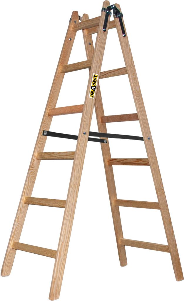 DRABEST | Leiter - PRO Serie - Malerleiter Holz - Holzleiter - 2 x 6 Stufen - Zweiseitige Klappleiter - Haushaltsleiter - bis 150 kg belastbar