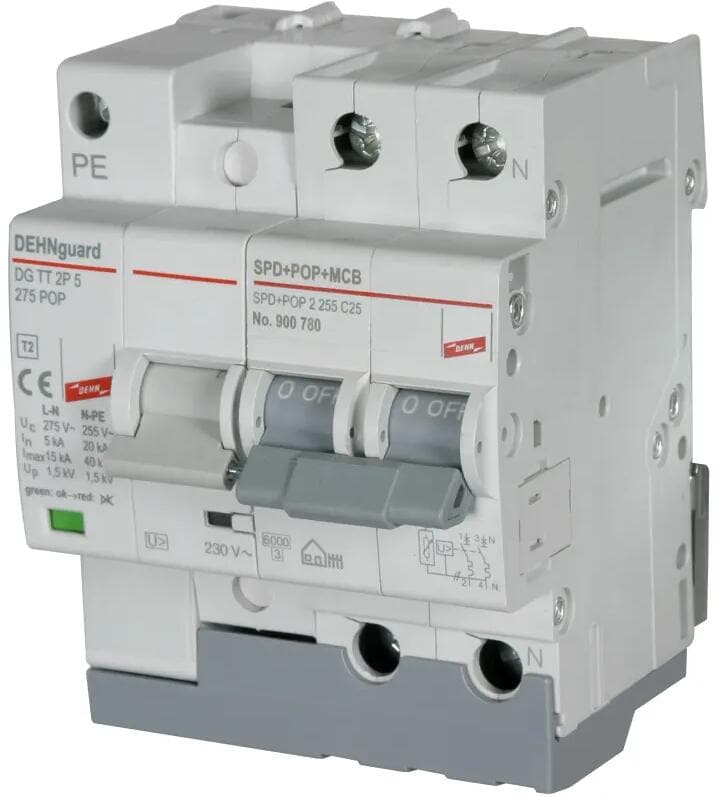 Dehn SPD+POP 2 255 C25 Schutzeinrichtungen für Überspannungen für Leitungsschutzschalter 2-polig C25 A (900780)