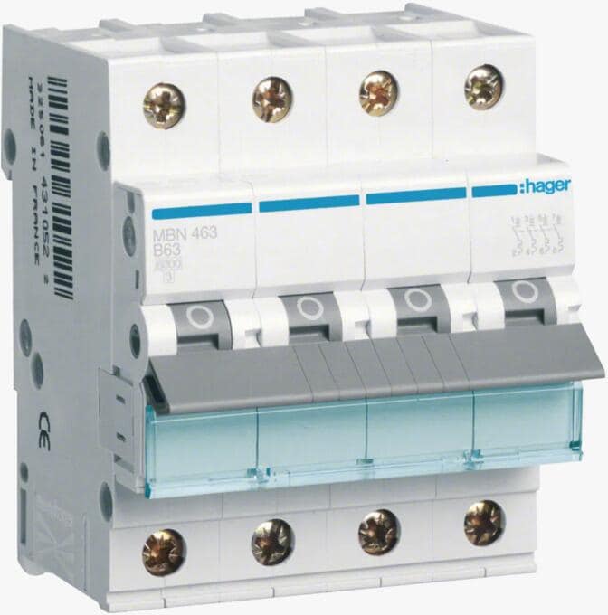 Hager MBN463 Leitungsschutzschalter 4 polig 6kA B-Charakteristik 63A 4 Module