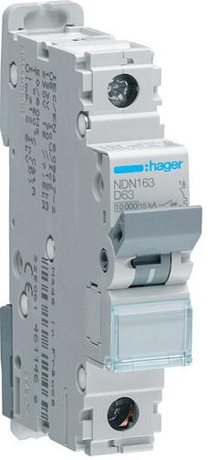 Hager NDN163 Leitungsschutzschalter 1 polig 10kA/15kA D-63A 1M