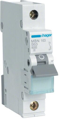 Hager MBN163 Leitungsschutzschalter, Sicherungsautomat, 1-polig, 6kA, B-Charakteristik, 63A