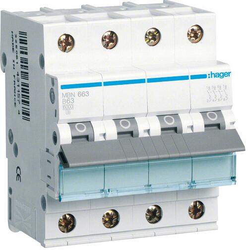 Hager NBN663 Leitungsschutzschalter 3P+N 10kA/15kA B-63A 4M
