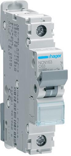 Hager NCN163 Leitungsschutzschalter 1 polig 10kA/15kA C-63A 1M