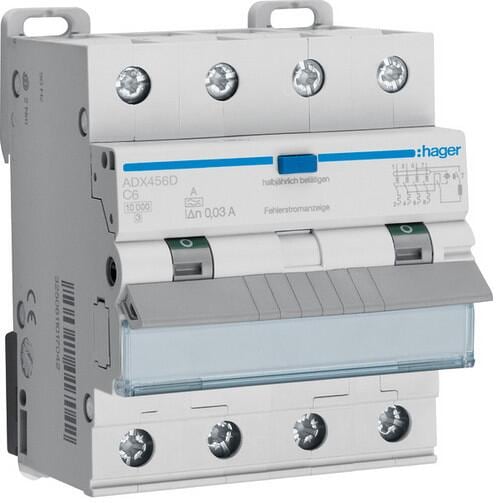 Hager ADX456D Fehlerstrom-Leitungsschutzschalter 4P 10kA C-6A 30mA Typ A