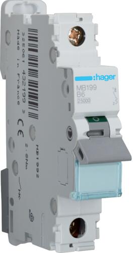 Hager MB199 Leitungsschutzschalter 1-polig 25kA 6A B-Charakteristik 1 PLE ÜKA