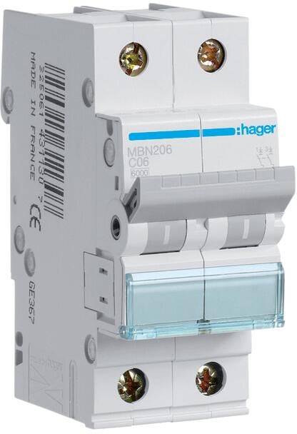 Hager MBN206 Leitungsschutzschalter 2 polig 6kA B-Charakteristik 6A 2 Module