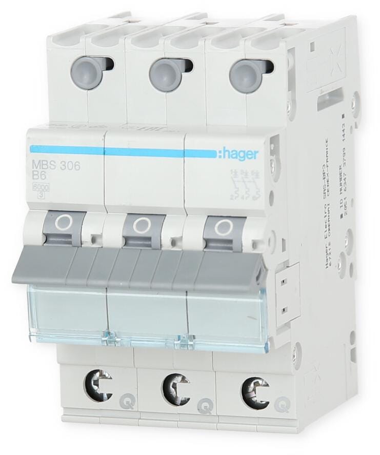 Hager MBS306 Leitungsschutzschalter, Sicherungsautomat, 3-polig, 6kA, B-Charakteristik, 6A