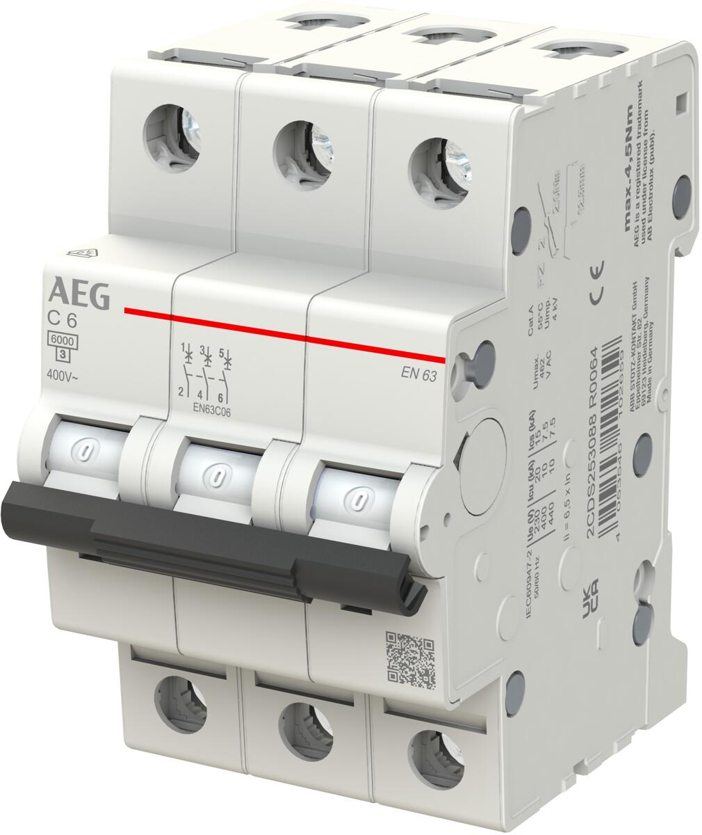 AEG EN63C06 Leitungsschutzschalter AC C, 6A, 3p, 400V, 3TE, 50-60Hz (2CDS253088R0064)