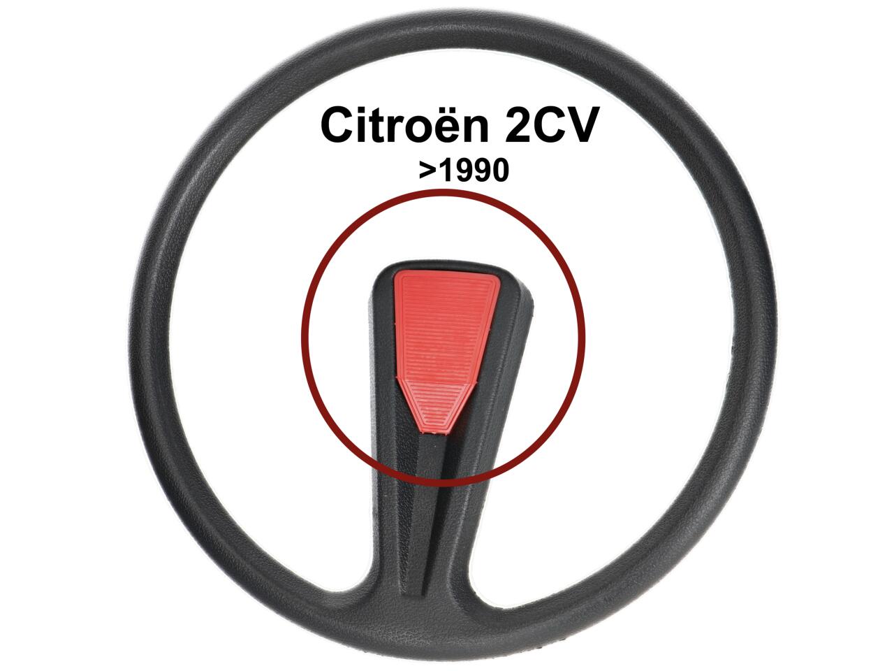 Lenkradnabenabdeckung aus Kunststoff (wie original), für 1 Speichen Lenkrad. Farbe: rot. Passend für Citroen 2CV, verbaut bis 1990.