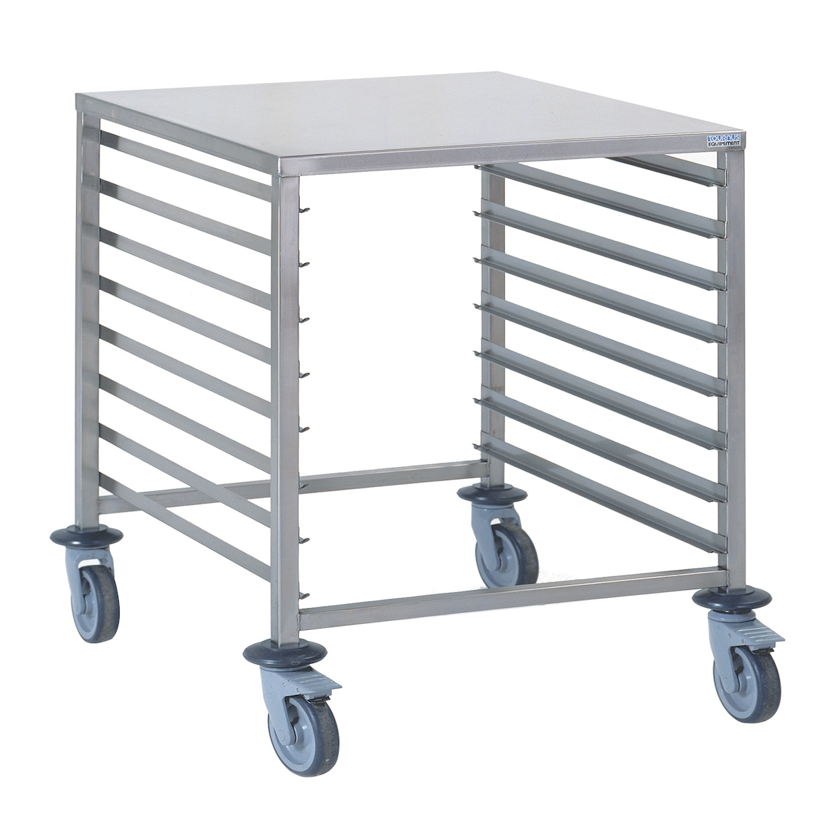 Tournus Regalwagen GN 2/1 mit 8 Ebenen & Ablage Gesamtabm:775x660x900mm Mit 4 Lenkrollen aus Polyamid (rostfrei) Durchm 125mm, 2 mit Bremse