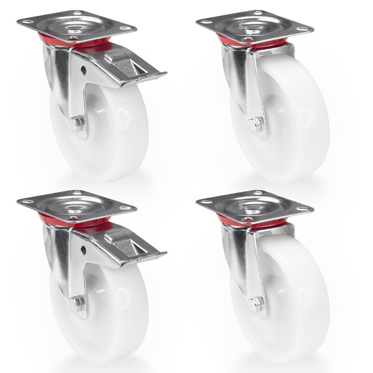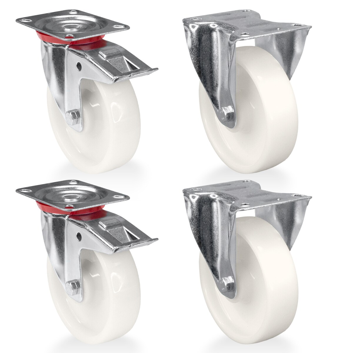 PRIOstahl Transportrollen 125mm Rollensatz 2 Lenkrollen + 2 Lenkrollen mit Bremse Weiß Schwerlast