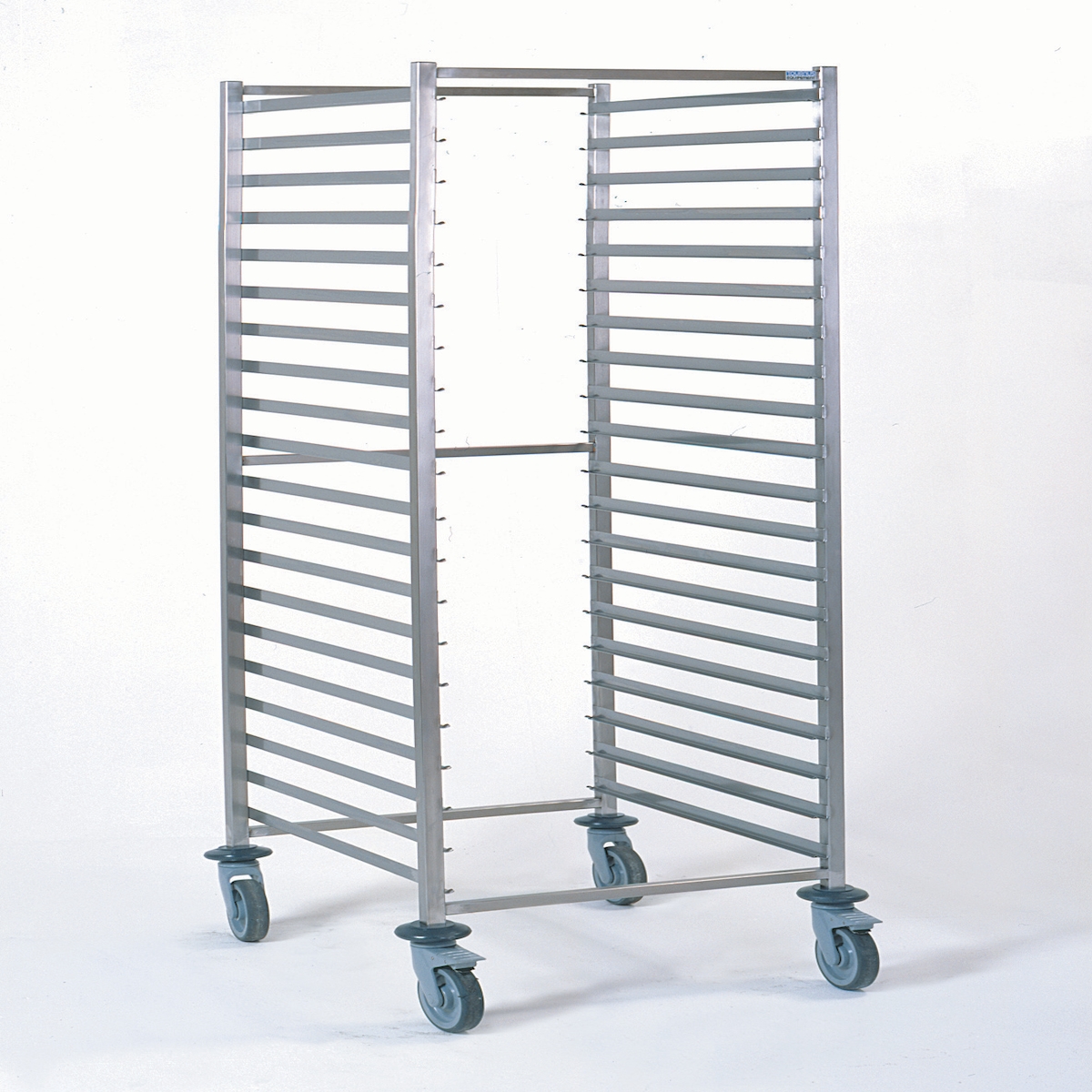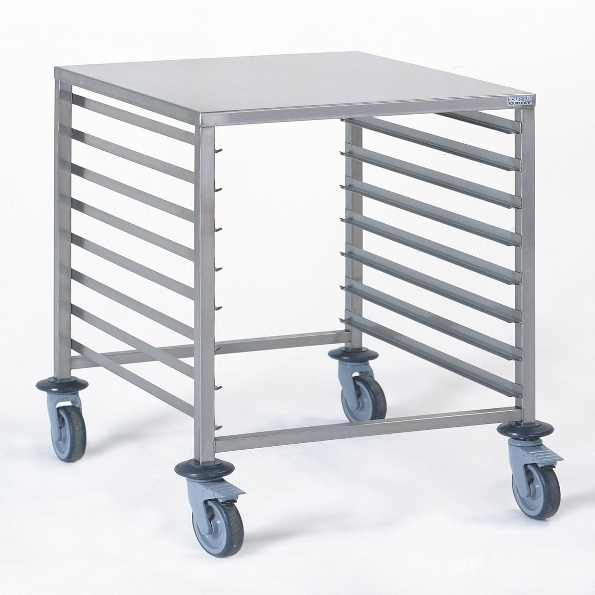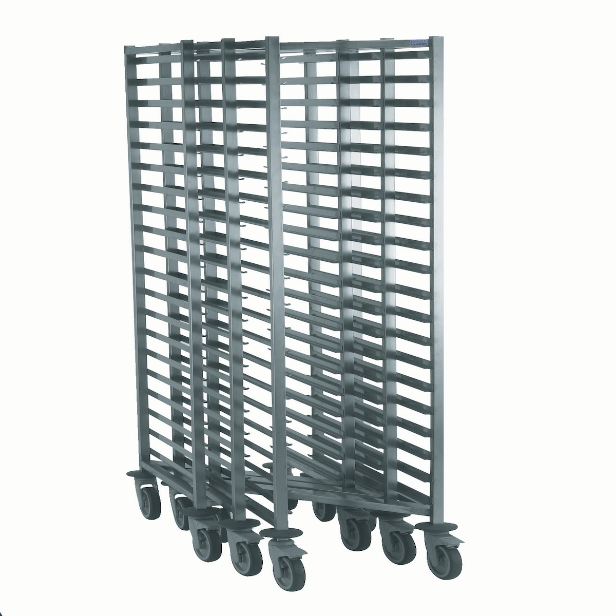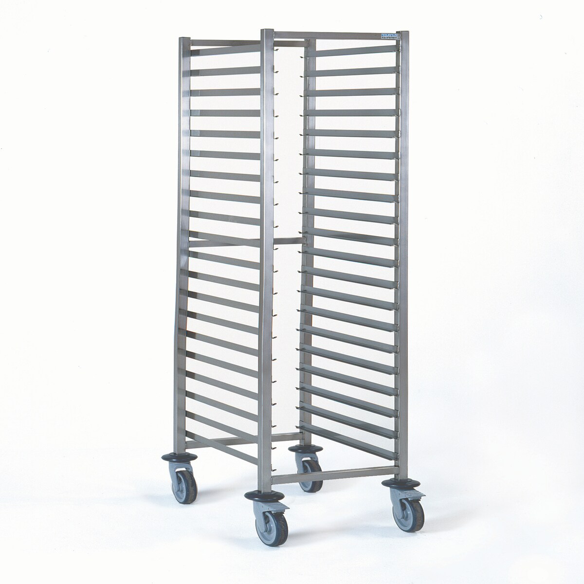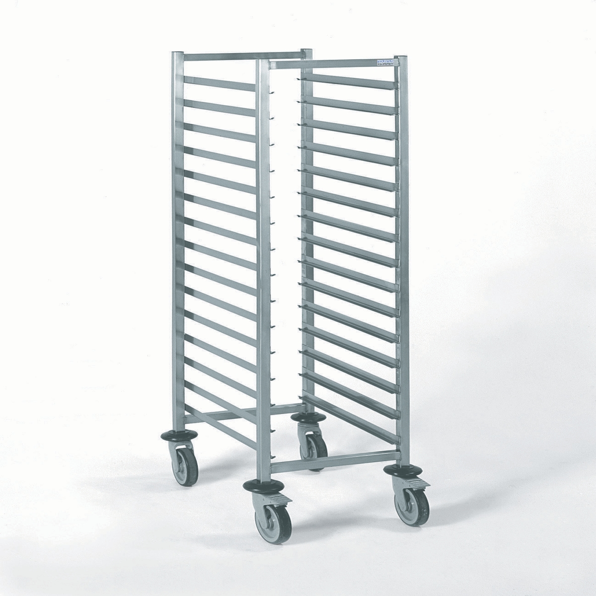 Tournus Regalwagen GN 2/1 mit 20 Ebenen Gesamtabm: 775x660x1785 mm Mit 4 Lenkrollen aus Polyamid (rostfrei) Durchm 125mm, davon 2 mit Bremse