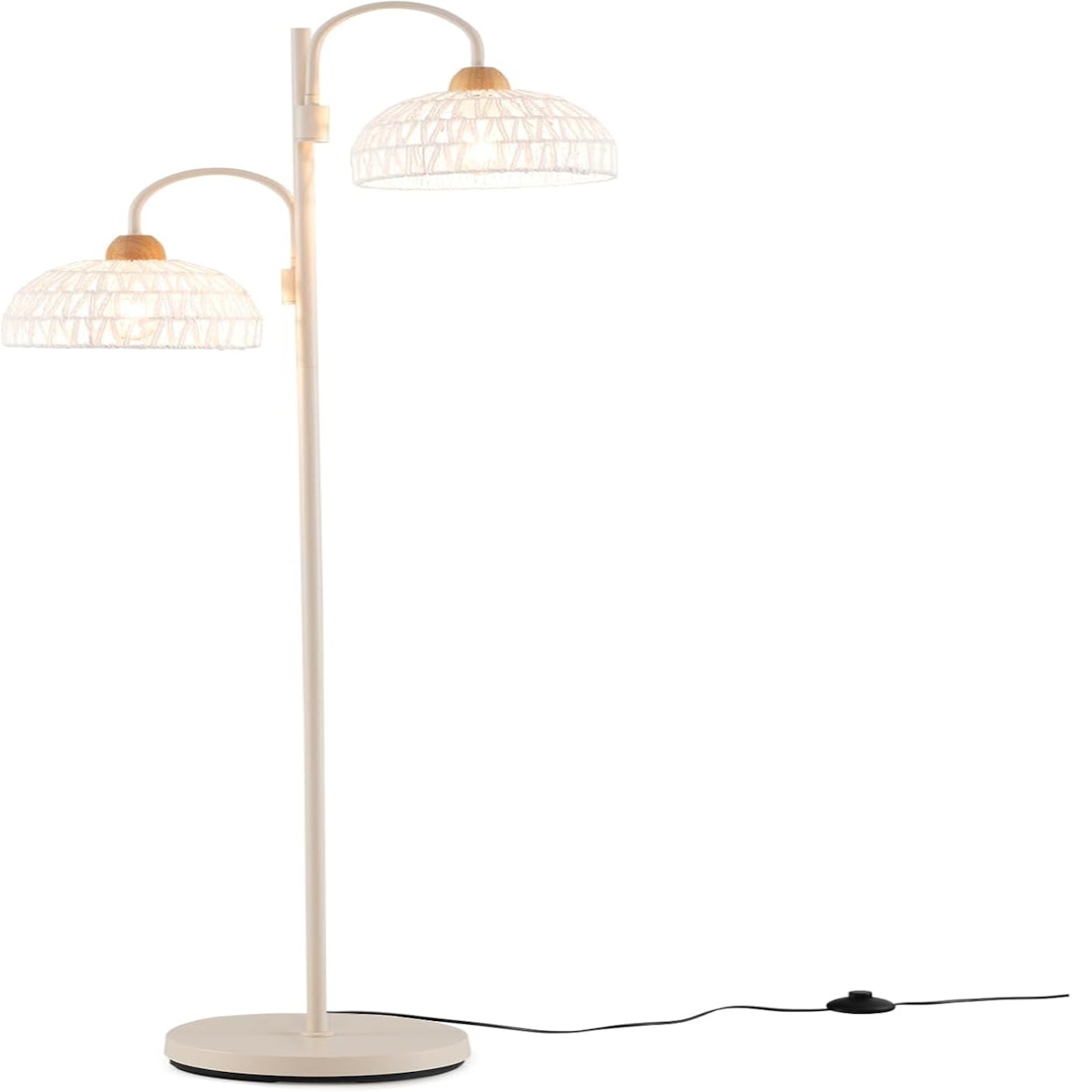 COSTWAY Rattan Stehleuchte Wohnzimmer 350° Drehbare E27 Leselampe mit Fußschalter Stehleuchte Höhe 155 cm