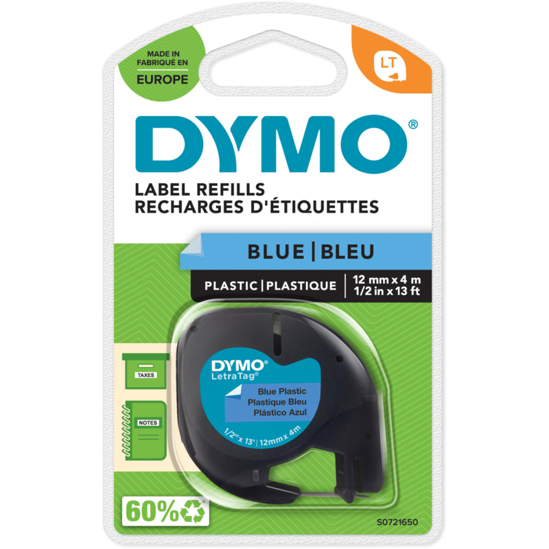 Dymo LetraTag Kunstoffband S0721650 Schriftband, blau, 12 mm x 4 m
