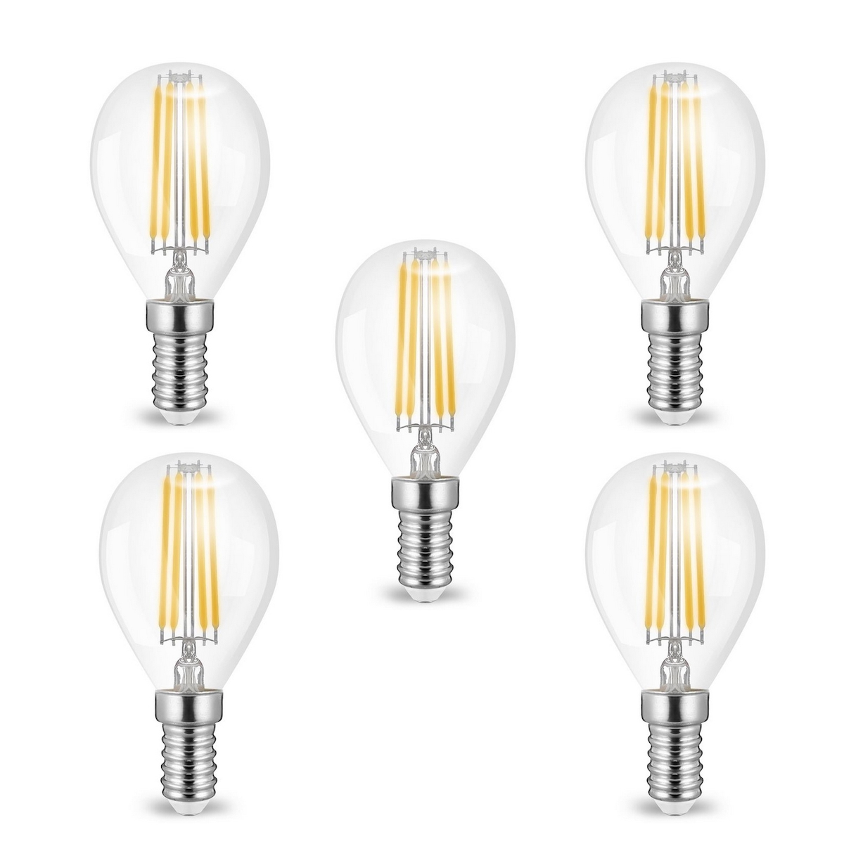 V-Tac 5x E14 Filament LED Leuchtmittel Leuchte Birne Kugel 4w 470 Lumen Eck klar Glas warmweiß (2700K)