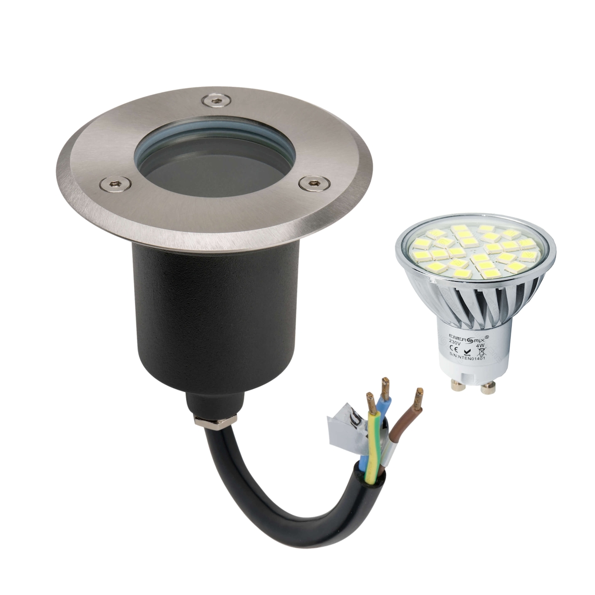 LED Bodenleuchte Bodenspot Bodenstrahler Edelstahl Eckig mit 4W LED Leuchtmittel Kaltweiß 2000KG belastbar IP67