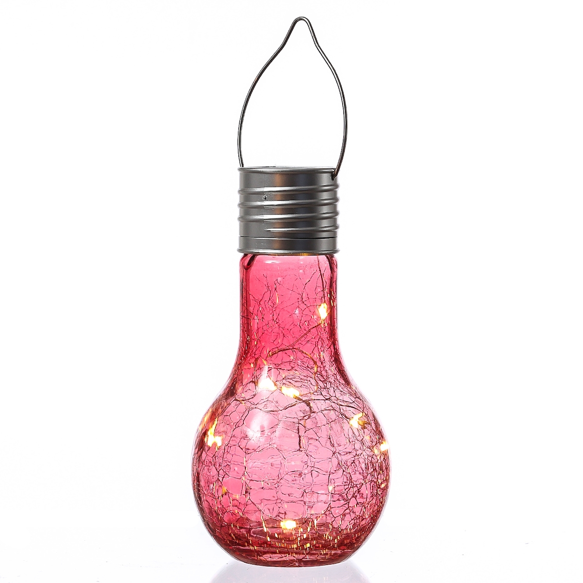 MARELIDA LED Solar Glühbirne Crackle Bruchglas m. Lichterkette für Garten Balkon rot