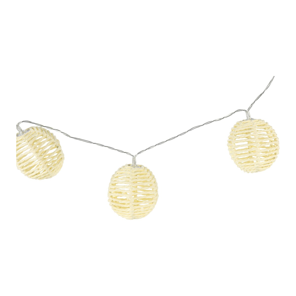 Raphia Lichterkette mit 10 LED Kugeln - Batterie betrieben - Farbe: weiß