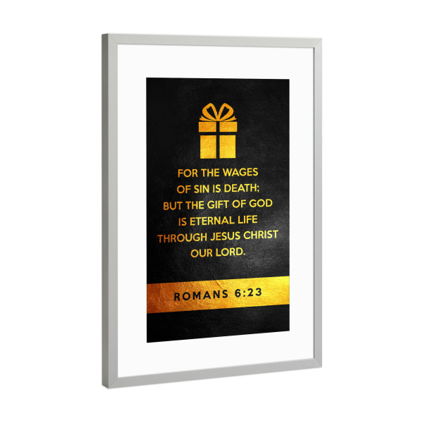 Poster mit Rahmen Silber "Romans 6:23" artboxONE - Typografie,Liebe