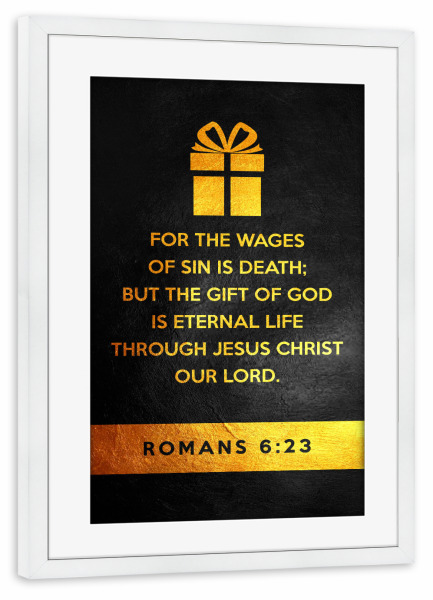 Poster mit Rahmen weiß "Romans 6:23" artboxONE - Typografie,Liebe