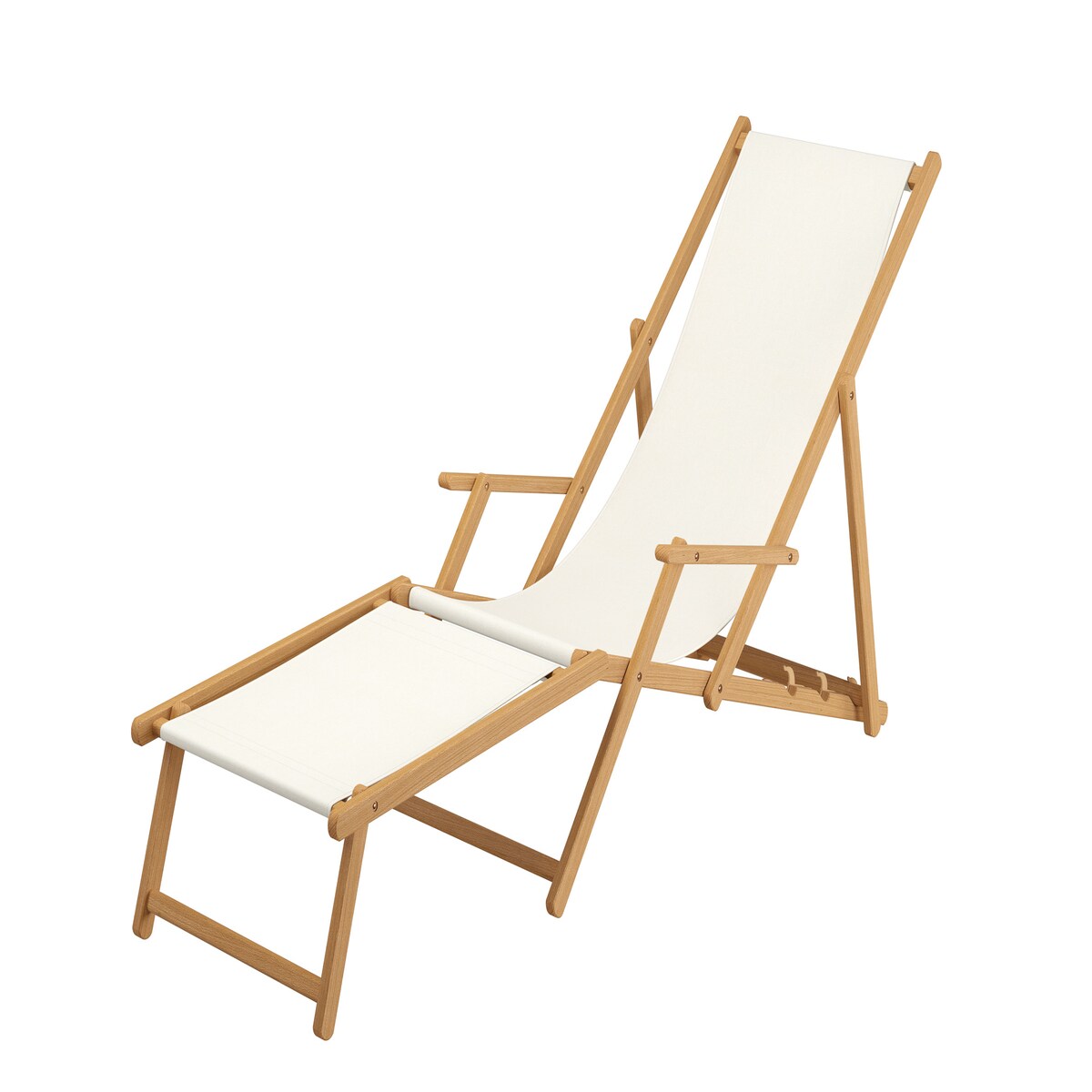 Liegestuhl weiß Fußablage u Kissen Deckchair klappbar Sonnenliege Holz Gartenliege 10-303 F KD