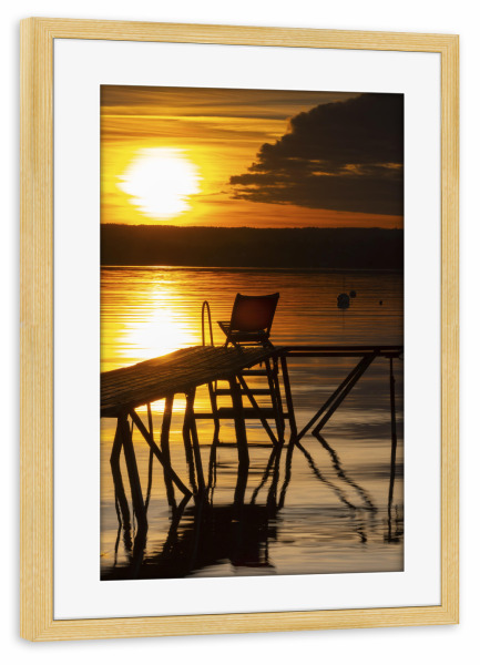 Poster mit Rahmen kiefer "Abends am Ammersee" artboxONE - Natur - Ammersee,Bayern,Abendstimmung,Natur,Sonnenuntergang,Liegestuhl