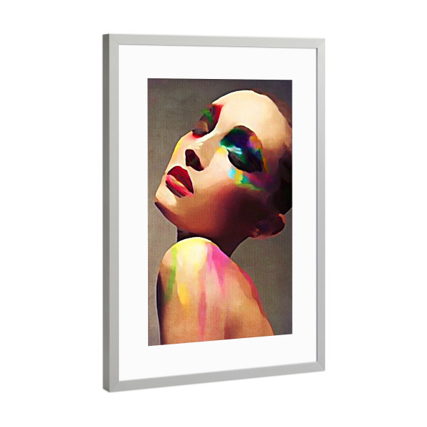Poster mit Rahmen Silber "Rainbow Light" artboxONE - Fashion - Model,Fashion,Make up,Schminke,Portrait,Woman,Face,Frau