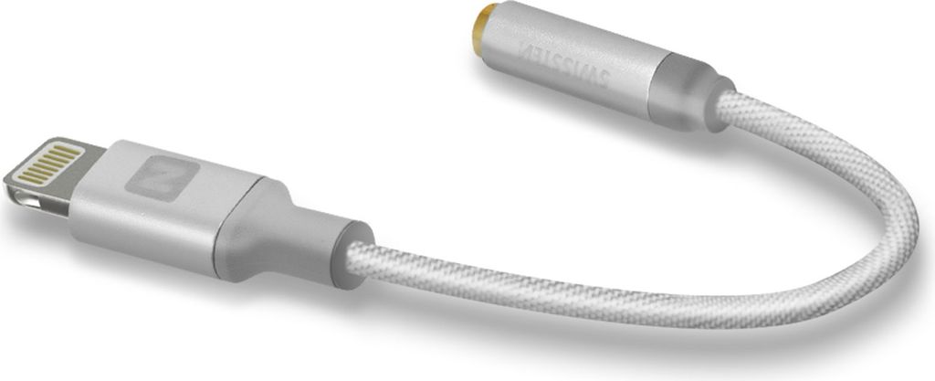 SWISSTEN - Audio Adapter Lightning / Klinke 3,5 mm (Buchse), Textilgeflecht, Länge 0,15 m silber - 8595217466258