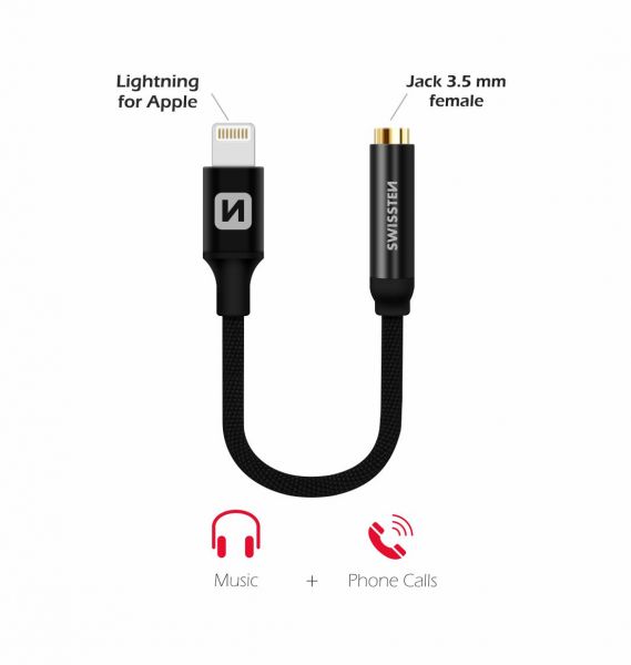 AUDIO ADAPTER SWISSTEN TEXTILE LIGHTNING /JACK 0,15 M BLACK - Swissten