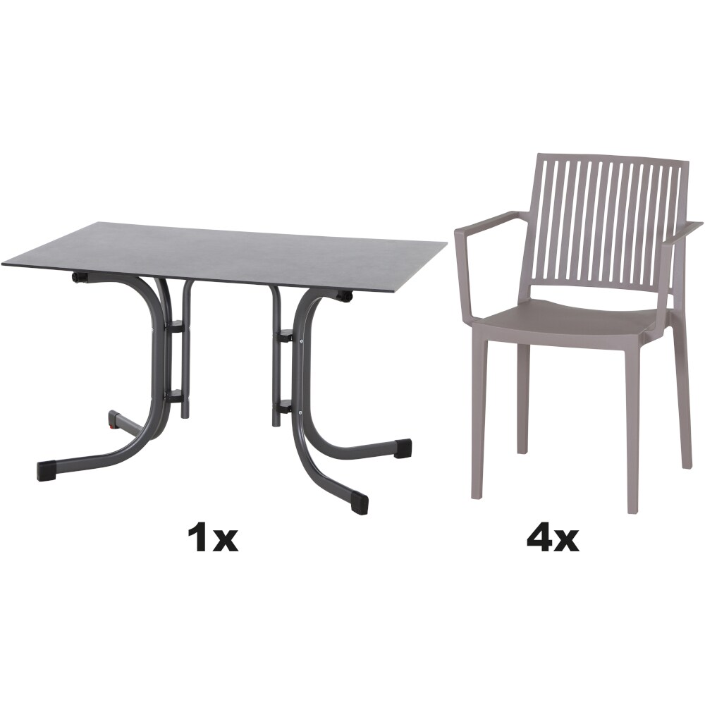 SIENA GARDEN Urban Lights Set 5teilig Lane Stuhl gastrotauglich taupe mit Tisch Sola 120x80