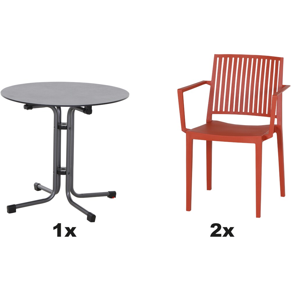 SIENA GARDEN Urban Lights Set 3teilig Square Stuhl gastrotauglich brick mit Tisch Sola Ø80