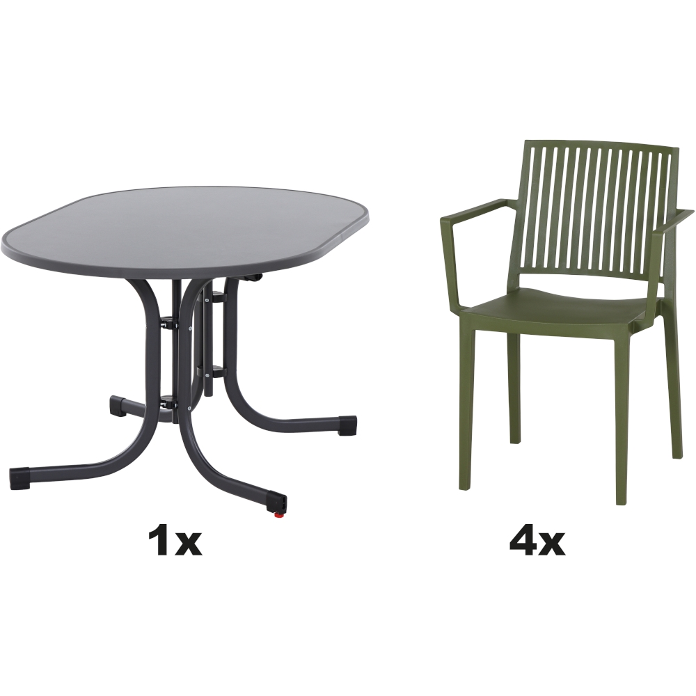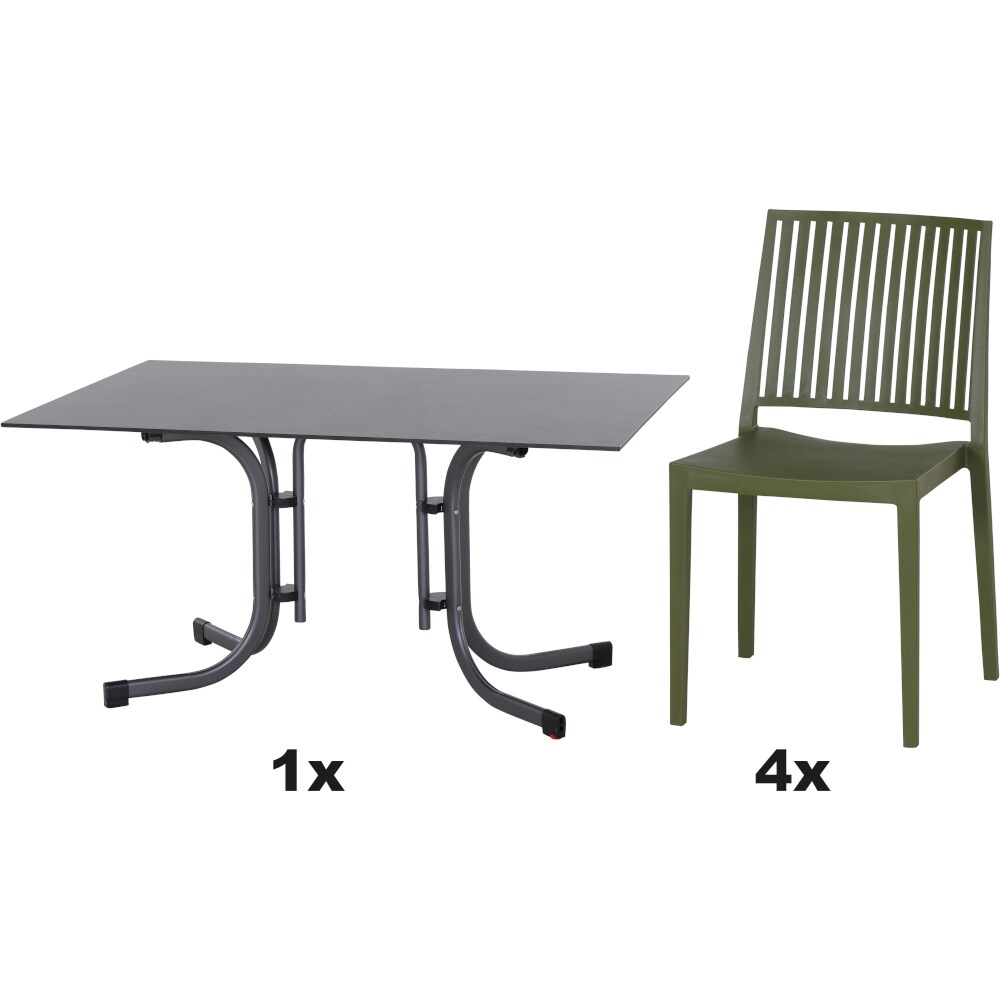 SIENA GARDEN Urban Lights Set 5teilig Lane Stuhl gastrotauglich olive mit Tisch Paco 140x90