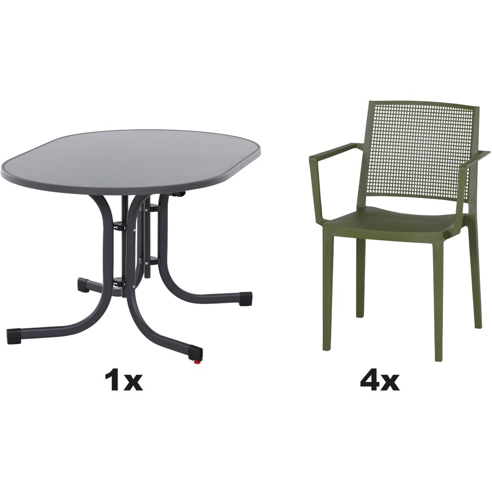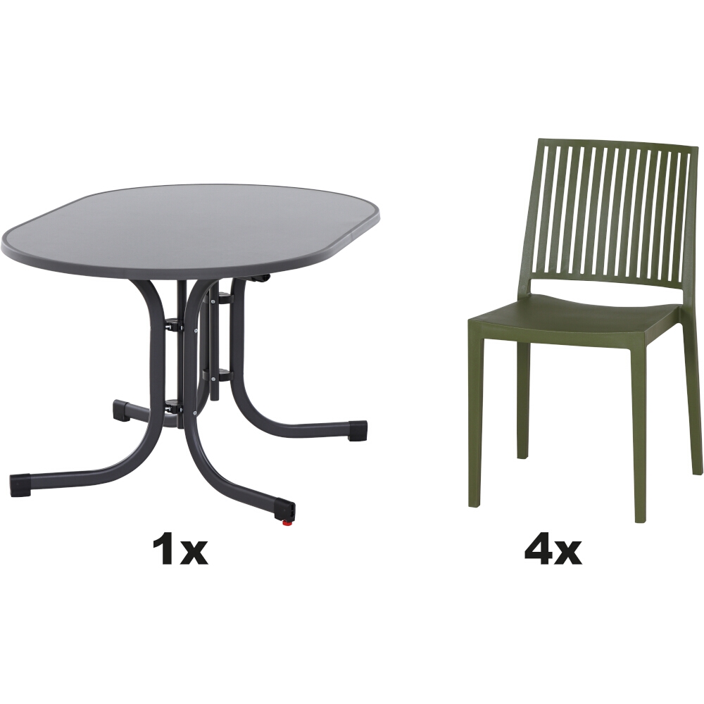 SIENA GARDEN Urban Lights Set 5teilig Lane Stuhl gastrotauglich olive mit Tisch Sola 140x90