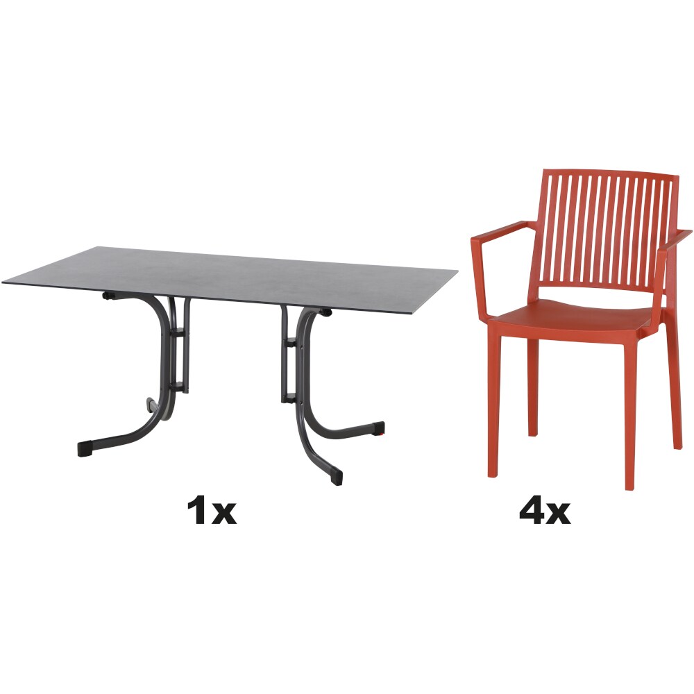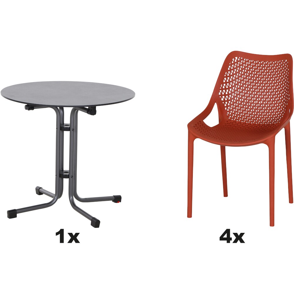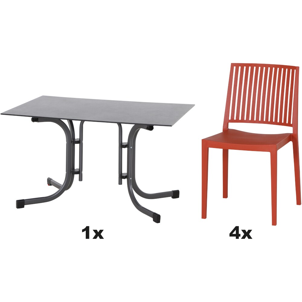 SIENA GARDEN Urban Lights Set 5teilig Lane Stuhl gastrotauglich brick mit Tisch Sola 120x80