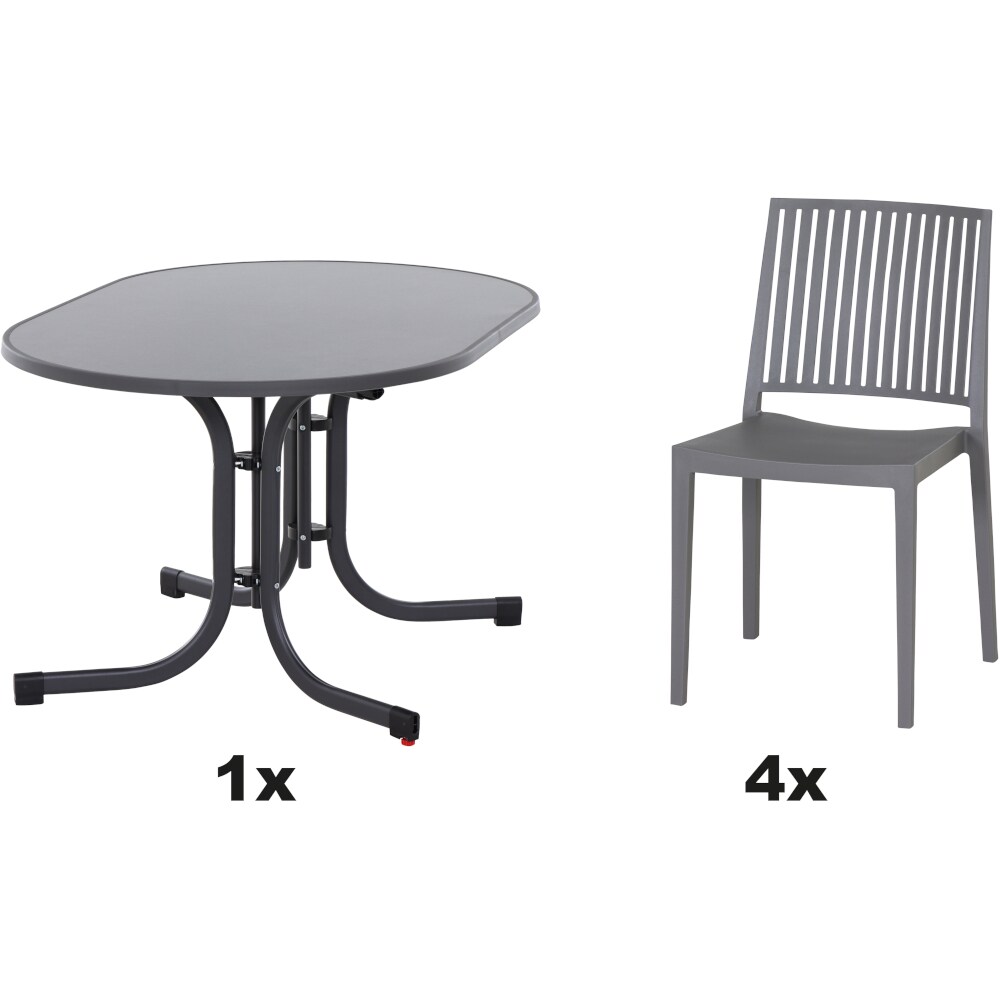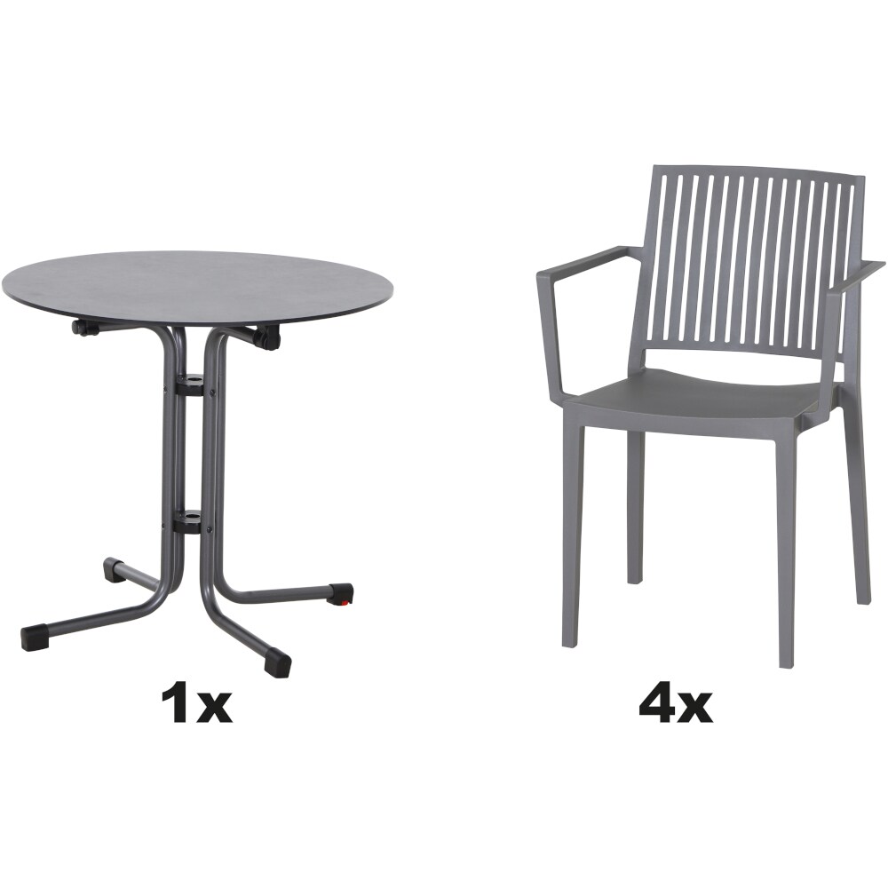 SIENA GARDEN Urban Lights Set 5teilig Lane Stuhl gastrotauglichgrau mit Tisch Paco 140x90