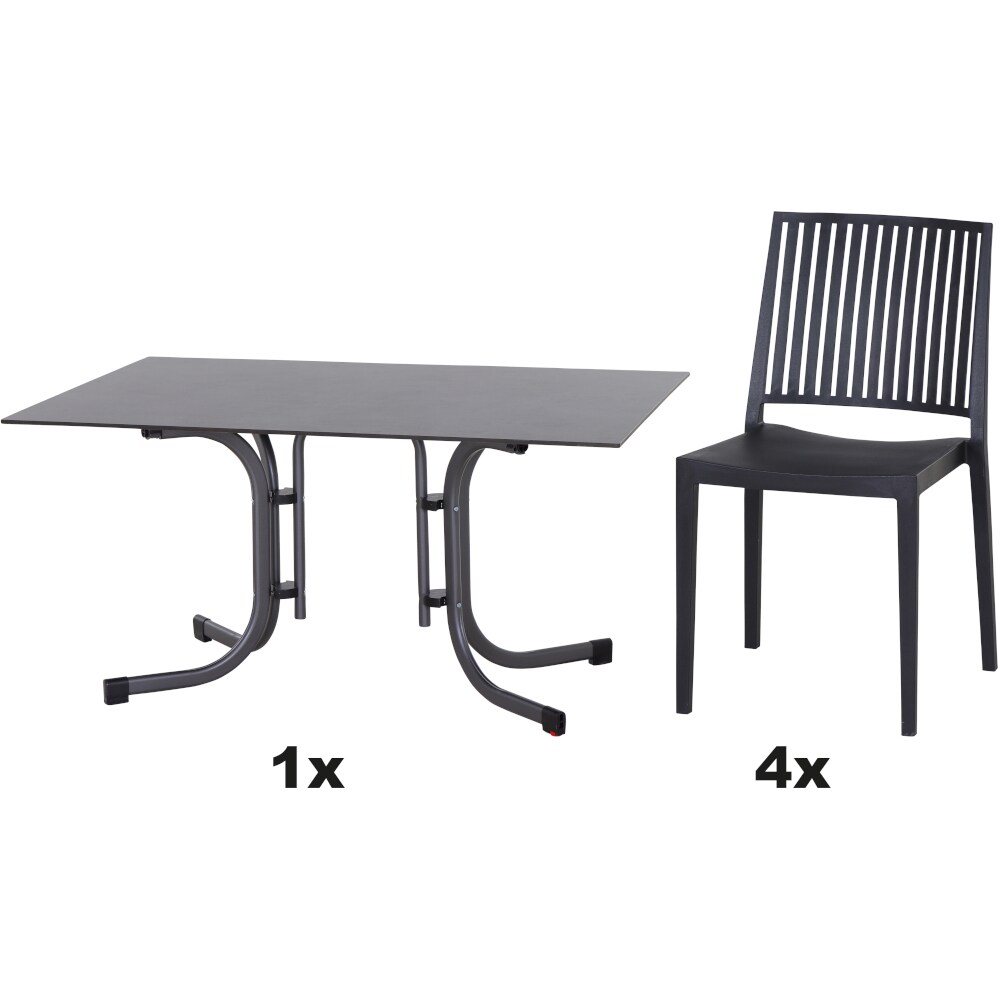 SIENA GARDEN Urban Lights Set 5teilig Lane Stuhl gastrotauglich anthrazit mit Tisch Sola 140x90