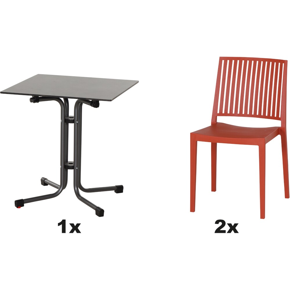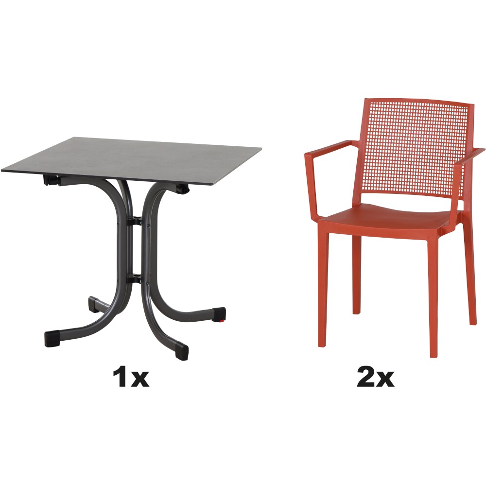 SIENA GARDEN Urban Lights Set 3teilig Square Stuhl gastrotauglich brick mit Tisch Sola 80x80