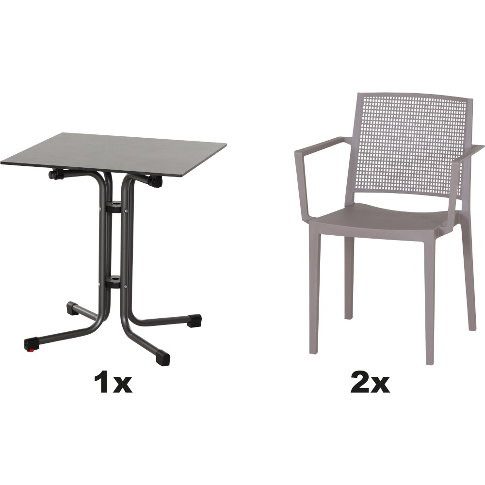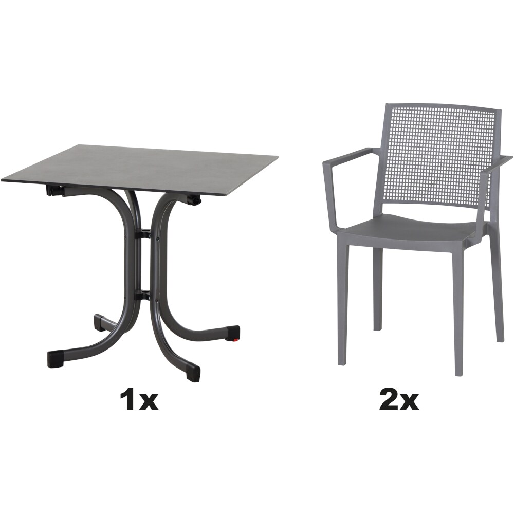 SIENA GARDEN Urban Lights Set 3teilig Lane Stuhl gastrotauglich grau mit Tisch Sola 80x80