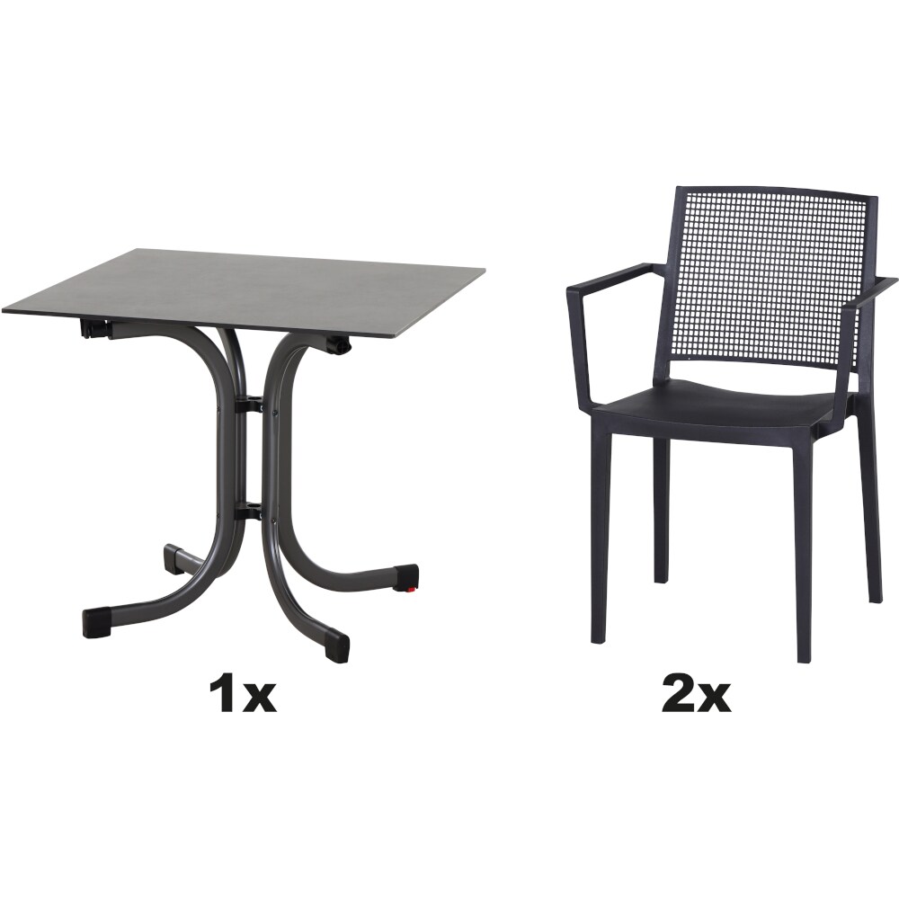 SIENA GARDEN Urban Lights Set 3teilig Square Sessel gastrotauglich anthrazit mit Tisch Sola 80x80