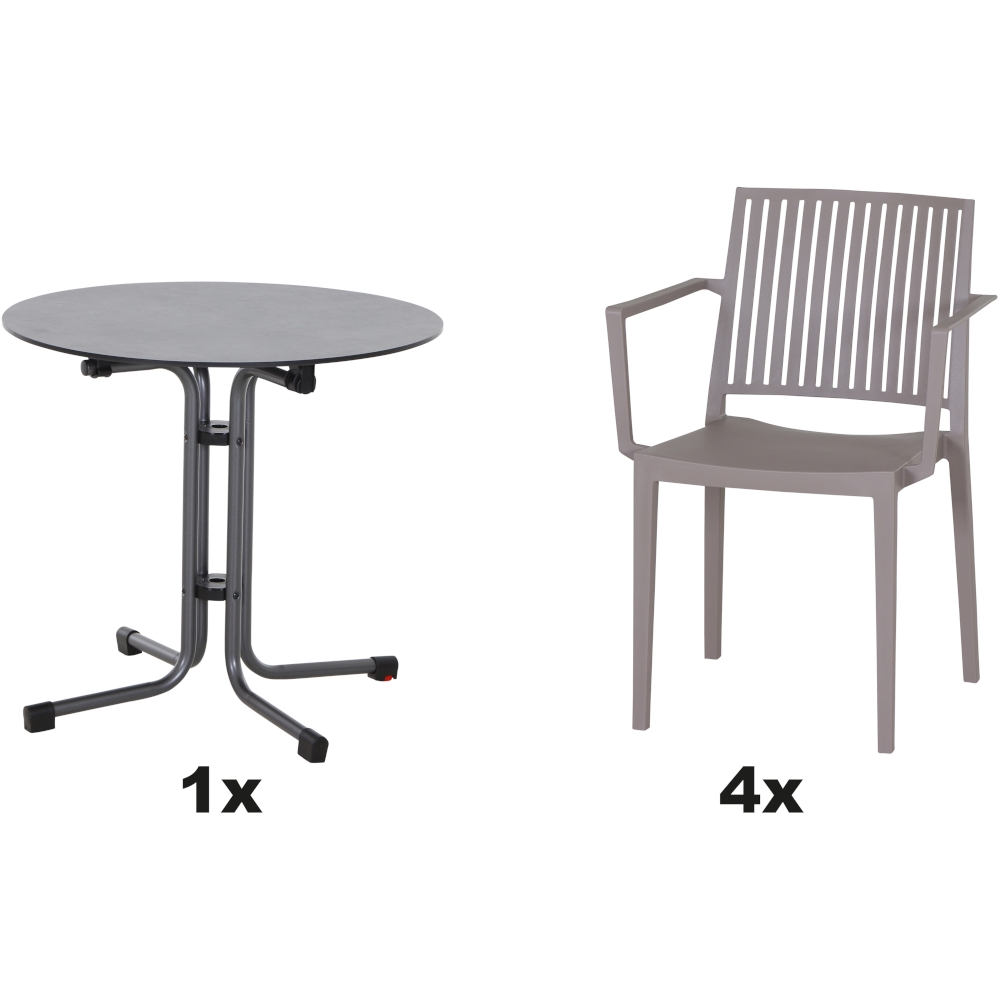 SIENA GARDEN Urban Lights Set 5teilig Lane Sessel gastrotauglich taupe mit Tisch Sola Ø80
