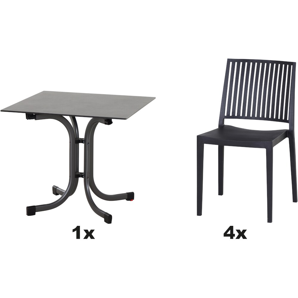 SIENA GARDEN Urban Lights Set 5teilig Lane Stuhl gastrotauglich anthrazit mit Tisch Sola 80x80